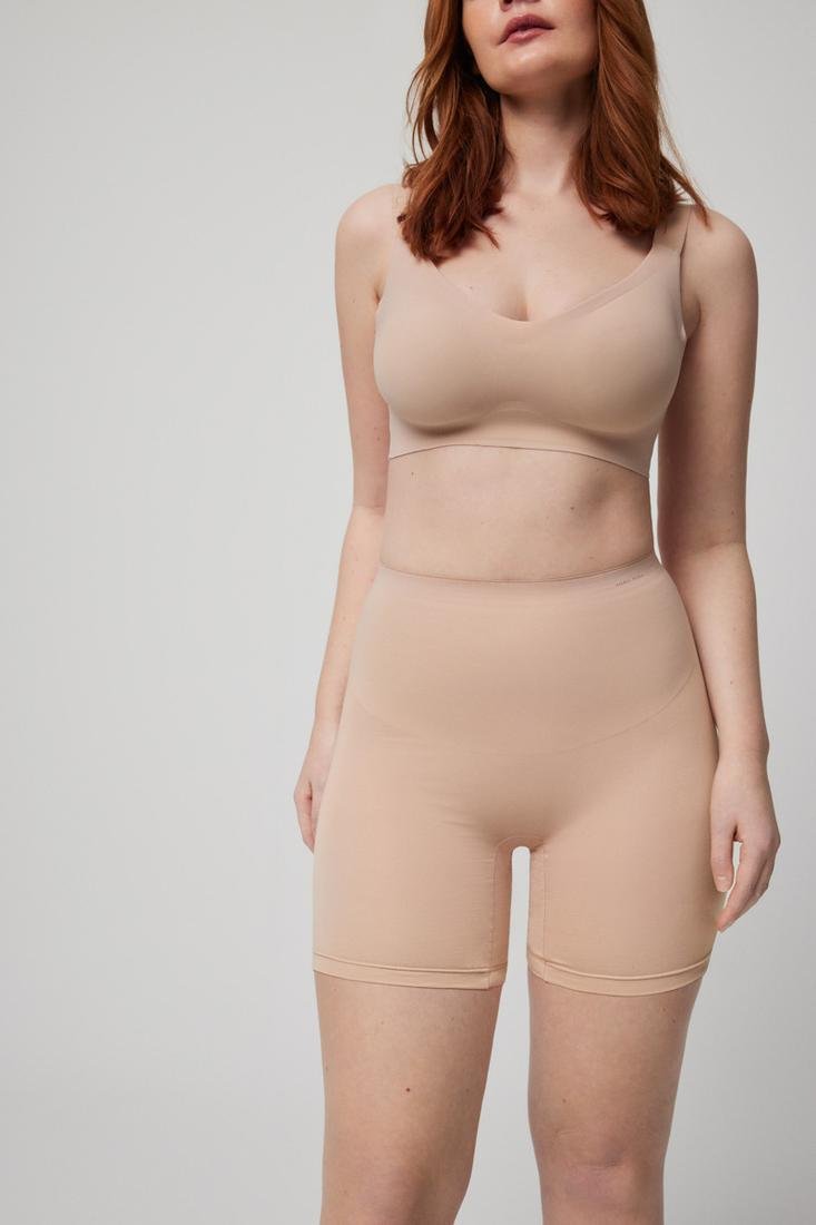 Faja reductora de algodón natural de compresión media. Moldea abdomen y piernas sin renunciar a la comodidad. Tejido transpirabile y antibacteriano.