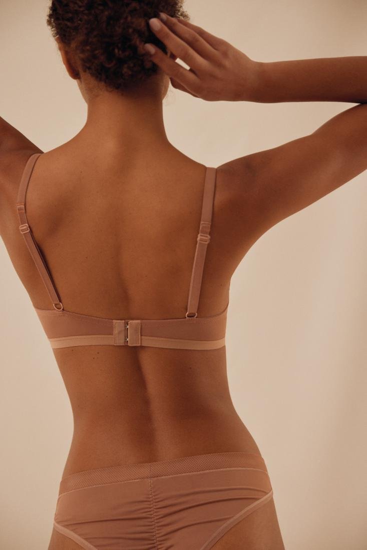 Sujetador con aro y con copas extra suaves y cómodas. Tejido suave de microfibra Dry-Fit con propiedades transpirables gracias a la novedosa tecnología Fresh Feel.